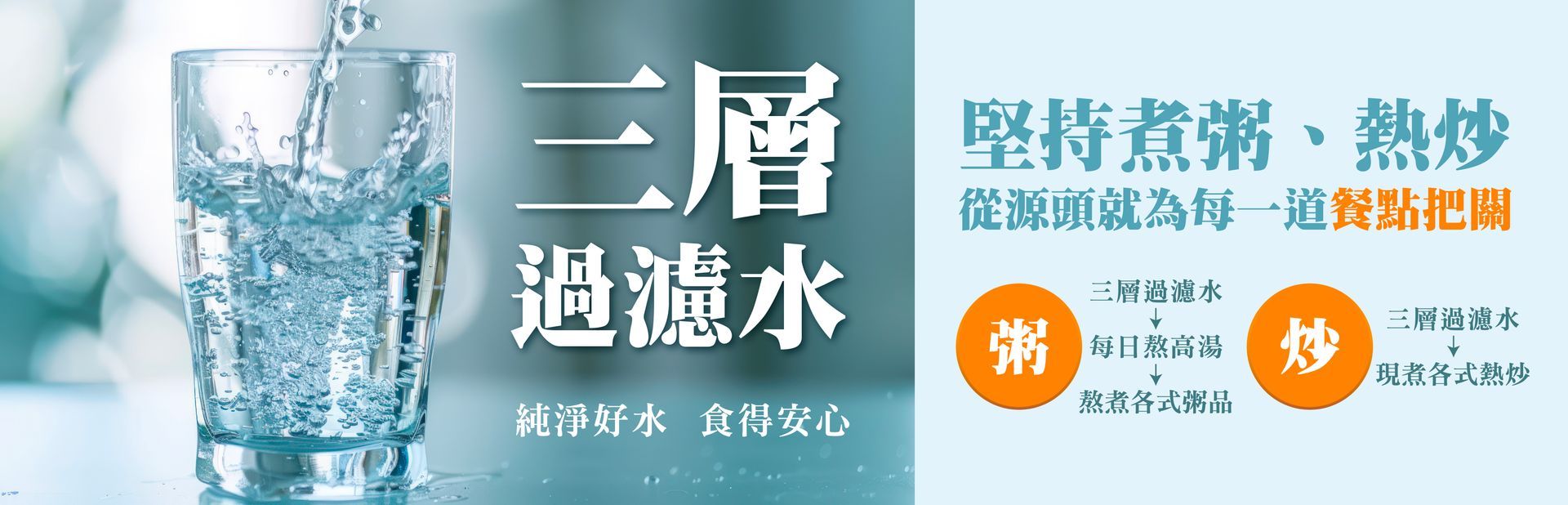粥品以及熱炒使用水源皆為三層過濾水